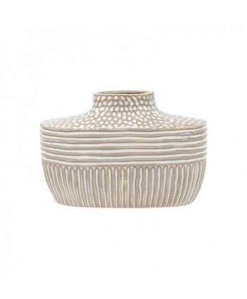 <div>Προσθέστε μια πινελιά κομψότητας στον χώρο σας με αυτό το εντυπωσιακό διακοσμητικό βάζο. Χειροποίητο από κεραμικό και διακοσμημένο με μοναδικές λεπτομέρειες, αποτελεί την ιδανική επιλογή για εκλεπτυσμένους και μοντέρνους εσωτερικούς χώρους. Τοποθετήστε το στο τραπέζι, το ράφι ή την κονσόλα σας και δώστε έναν ιδιαίτερο χαρακτήρα στη διακόσμηση του σπιτιού σας.</div><div><br></div><div><br><strong>Χρώμα:</strong></div><div>Μπέζ-Λευκό.</div><div><br></div><div><strong>Υλικό:</strong></div><div>Κεραμικό.</div><div><br></div><div><strong>Διαστάσεις:</strong><br>Μήκος: 31εκ.<br>Πλάτος: 11εκ.<br>Ύψος: 20εκ.</div><div><br></div><div><strong>Επιπρόσθετες λεπτομέρειες:</strong><br>Προέλευση P.R.C.<br>Τα χρώματα στην οθόνη μπορεί να διαφέρουν από τα πραγματικά.</div><div><br></div><div><strong>Συντήρηση και καθαρισμός:</strong><br>Μην χρησιμοποιείτε βαριά καθαριστικά διαλύματα. Σε περίπτωση λεκέ χρησιμοποιούμε ένα καθαριστικό πανί ελαφρώς βρεγμένο και τρίβουμε την περιοχή.</div><div><br></div><div><strong>Συσκευασία:</strong><br>Όλα τα εύθραυστα προϊόντα αποστέλλονται εντός συσκευασιών που προστατεύουν τα προϊόντα με bubble wraps/αεροπλάστ αν αυτό κριθεί απαραίτητο.</div>