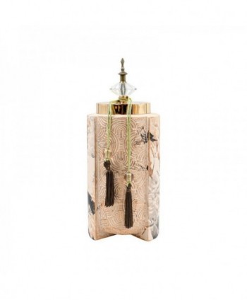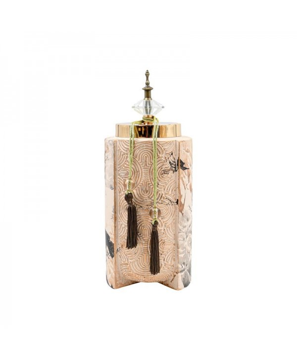 <div>Αναβαθμίστε την αισθητική του χώρου σας με αυτό το εντυπωσιακό κεραμικό διακοσμητικό δοχείο. Με εκλεπτυσμένο σχεδιασμό που συνδυάζει φυσική υφή και πολυτελείς λεπτομέρειες, αποτελεί ένα κομψό στοιχείο για κάθε σύγχρονο χώρο.</div><div><br></div><div><strong>Χρώμα:</strong><br>Χρυσό-Μπέζ</div><div><br></div><div><strong>Υλικό:</strong><br>Κατασκευασμένο από υψηλής ποιότητας κεραμικό υλικό</div><div><br></div><div><strong>Διαστάσεις:</strong><br>Διάμετρος:14εκ<br>Ύψος:38εκ</div><div><br></div><div><strong>Ιδιεταιρότητες:</strong><br>Χρυσές λεπτομέρειες στο σώμα και στο καπάκι<br>Διακοσμητική κρυστάλλινη λεπτομέρεια στην κορυφή<br>Κομψή φούντα σε σκούρο καφέ χρώμα<br>Ιδανικό για αποθήκευση μικροαντικειμένων ή ως αυτόνομο διακοσμητικό<br>Συνδυάζεται άψογα τόσο με μοντέρνα όσο και με παραδοσιακά στοιχεία διακόσμησης</div><div><br></div><div><strong>Επιπρόσθετες λεπτομέρειες:</strong><br>Προέλευση P.R.C.<br>Δεν χρειάζεται ιδιαίτερη συντήρηση. Ένα απλό ξεσκόνισμα αρκεί. Αποφύγετε την χρήση χημικών καθαριστικών.<br>Τα χρώματα στην οθόνη μπορεί να διαφέρουν από τα πραγματικά.</div><div><br></div><div><strong>Συσκευασία:</strong><br>Όλα τα εύθραυστα προϊόντα αποστέλλονται εντός συσκευασιών που προστατεύουν τα προϊόντα με bubble wraps/αεροπλάστ αν αυτό κριθεί απαραίτητο.</div>