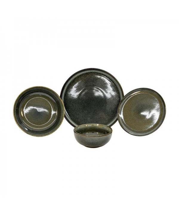 <div>Ένα μοναδικό σερβίτσιο με ιδιαίτερη κατασκευή από stoneware, εξαιρετικά ανθεκτικό στην καθημερινή χρήση και στο πλυντήριο πιάτων, αποτελεί εξαιρετική επιλογή αισθητικής για την κουζίνα και την τραπεζαρία σας. Το ιδιαίτερο υάλωμα του stoneware ενδεχομένως να παρουσιάζει διαφοροποιήσεις χρώματος από το ένα αντικείμενο στο άλλο, καθώς και μικρές αλλοιώσεις τύπου στιγμάτων, οι οποίες οφείλονται στο ξεχωριστό ύφος και τη χειροποίητη αισθητική του.</div><div><br></div><div><strong>Χρώμα:</strong></div><div>Σκούρο Πράσινο</div><div><br></div><div><strong>Υλικό:</strong></div><div>Stoneware.</div><div><br></div><div><strong>Διαστάσεις:</strong><br>Διάμετρος ρηχού πιάτου: 26.5 εκ. 4τμχ<br>Διάμετρος πιάτου γλυκού: 19.5εκ. 4τμχ<br>Μπολ σούπας: 19.8εκ. (διάμετρος) x 4.5 εκ. (ύψος) 4τμχ<br>Μπολ βαθύ: 14εκ. (διάμετρος) x 6εκ. (ύψος) 4τμχ</div><div><br></div><div><strong>Επιπρόσθετες λεπτομέρειες:</strong><br>Προέλευση: P.R.C.<br>Τα χρώματα στην οθόνη μπορεί να διαφέρουν από τα πραγματικά.</div><div><br></div><div><strong>Συσκευασία:</strong><br>Το σερβίτσιο αποστέλλεται σε λευκό κουτί.<br>Όλα τα εύθραυστα προϊόντα αποστέλλονται εντός συσκευασιών που προστατεύουν τα προϊόντα με bubble wrap/αεροπλάστ, αν αυτό κριθεί απαραίτητο.</div>