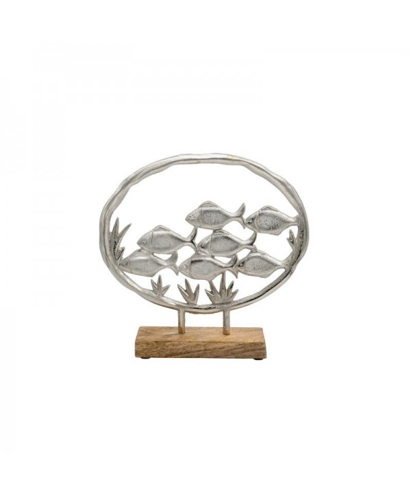 <div>Φέρτε μια πινελιά θαλάσσιας γοητείας στο τραπέζι σας.Αυτό το επιτραπέζιο διακοσμητικό αλουμινίου Fish με ξύλινη βάση αποτελεί μια κομψή και διαχρονική επιλογή για κάθε χώρο. Κατασκευασμένο από υψηλής ποιότητας αλουμίνιο και ξύλο, το διακοσμητικό διαθέτει ένα όμορφο ψάρι που προσθέτει μια πινελιά κομψότητας και φινέτσας. Η ανθεκτική ξύλινη βάση εξασφαλίζει σταθερότητα και ισορροπία, ενώ η ασημένια επιφάνεια του αλουμινίου προσδίδει μια αίσθηση πολυτέλειας.</div><div><br></div><div><strong>Χρώμα:</strong><br>Ασημί</div><div><br></div><div><strong>Διαστάσεις:</strong><br>Μήκος:25εκ<br>Πλάτος:5εκ<br>Ύψος:24εκ</div><div><br></div><div><strong>Επιπρόσθετες λεπτομέρειες:</strong><br>Προέλευση India.<br>Δεν χρειάζεται ιδιαίτερη συντήρηση. Ένα απλό ξεσκόνισμα αρκεί. Αποφύγετε την χρήση χημικών καθαριστικών.<br>Τα χρώματα στην οθόνη μπορεί να διαφέρουν από τα πραγματικά.</div><div><br></div><div><strong>Συσκευασία:</strong><br>Όλα τα εύθραυστα προϊόντα αποστέλλονται εντός συσκευασιών που προστατεύουν τα προϊόντα με bubble wraps/αεροπλάστ αν αυτό κριθεί απαραίτητο.</div><div></div><div></div>
