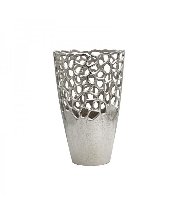 <div>Αναδείξτε την αισθητική του χώρου σας με αυτό το εντυπωσιακό μεταλλικό διακοσμητικό βάζο, κατασκευασμένο από αλουμίνιο υψηλής ποιότητας. Το ιδιαίτερο σχέδιο του βάζου συνδυάζει την κομψότητα με την σύγχρονη διακόσμηση, δημιουργώντας ένα μοναδικό διακοσμητικό στοιχείο για το σαλόνι, την τραπεζαρία ή οποιονδήποτε άλλο χώρο του σπιτιού ή του γραφείου σας.</div><div><br></div><div><strong>Χρωμα:</strong><br>Ασημί</div><div><br></div><div><strong>Διαστάσεις:</strong><br>Μήκος:21εκ<br>Πλάτος:13εκ<br>Ύψος:31εκ</div><div><br></div><div><strong>Επιπρόσθετες λεπτομέρειες:</strong><br>Προέλευση Ινδία<br>Δεν χρειάζεται ιδιαίτερη συντήρηση. Ένα απλό ξεσκόνισμα αρκεί. Αποφύγετε την χρήση χημικών καθαριστικών.<br>Τα χρώματα στην οθόνη μπορεί να διαφέρουν από τα πραγματικά.<br>Κατασκευασμένο απο αλουμίνιο.</div><div><br></div><div><strong>Σχέδιο:</strong> Διακριτικό διάτρητο σχέδιο στο επάνω μισό για μοντέρνα αίσθηση.<br><strong>Φινίρισμα:</strong> Πολυτελές, γυαλιστερό φινίρισμα που αναδεικνύει τη μεταλλική υφή.<br><strong>Διαστάσεις:</strong> Ιδανικό μέγεθος για τραπεζάκια, ράφια ή κονσόλες.<br><strong>Χρήση:</strong> Ιδανικό για διακόσμηση, είτε με λουλούδια είτε ως αυτόνομο διακοσμητικό.</div><div><br><strong>Αυτό το μεταλλικό βάζο με διάτρητο σχέδιο είναι η ιδανική προσθήκη για να δώσετε χαρακτήρα και στυλ σε κάθε γωνιά του χώρου σας.</strong></div><div><br></div><div><strong>Συσκευασία:</strong><br>Όλα τα εύθραυστα προϊόντα αποστέλλονται εντός συσκευασιών που προστατεύουν τα προϊόντα με bubble wraps/αεροπλάστ αν αυτό κριθεί απαραίτητο.</div>